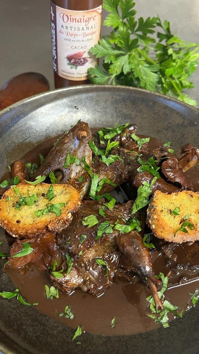 Salmis de palombes du sud-ouest et vinaigre cacao