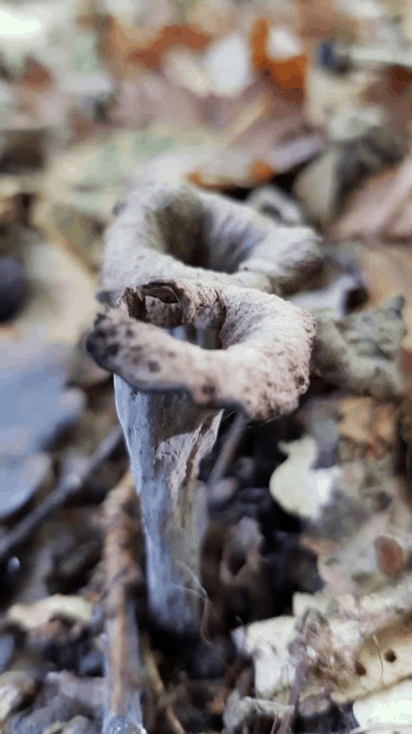 La trompette de la mort (craterellus cornucopioides), contrairement à son nom, est comestible. Son chapeau (2 cm à 9 cm), irrégulier et creux jusqu’à la base de son pied, est en forme de trompette. Avec sa couleur grise cendrée à l’extérieur (noire à l’intérieur), elle reste difficile à repérer dans les couverts de feuilles mortes bien qu’elle pousse par groupes. Il existe des espèces très proches qui sont également comestibles. Sa saveur est excellente.