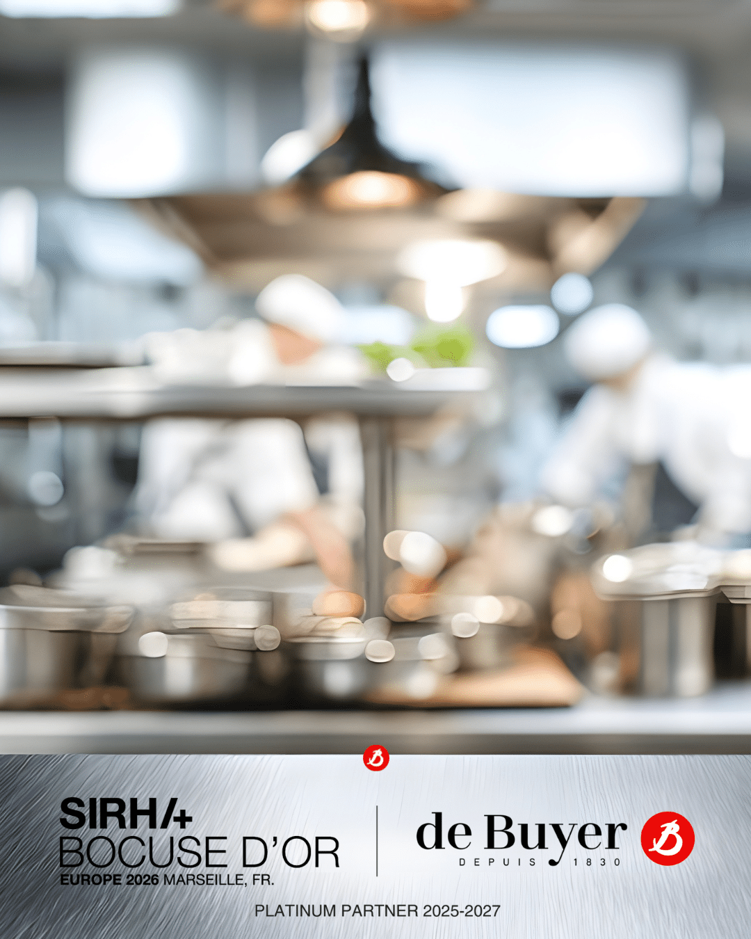 De Buyer, partenaire du Bocuse d’Or, avec la collection d’ustensiles de cuisson Affinity, en inox multicouche 5-ply, vous invite à les rejoindre pour cet incroyable événement.