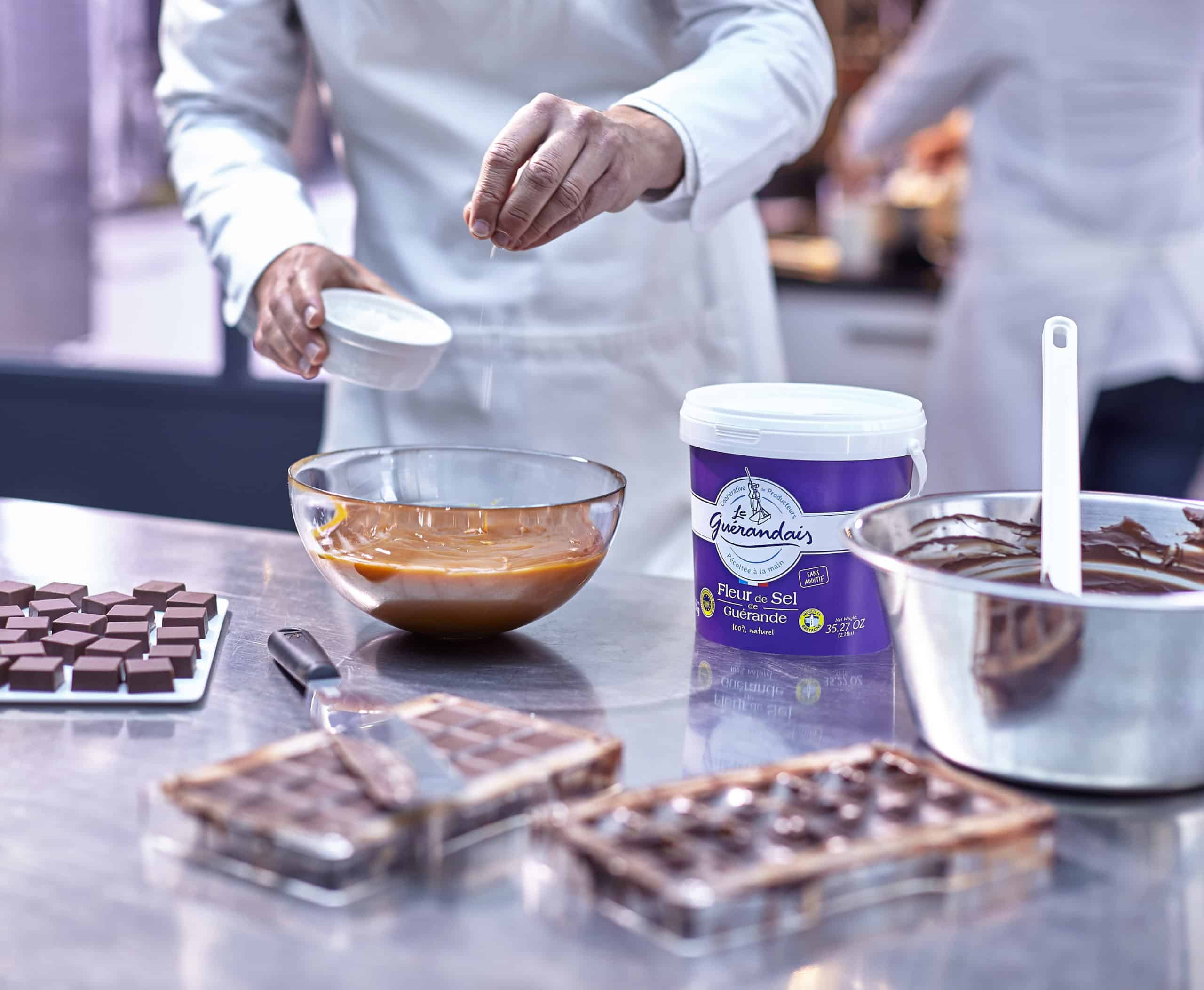 Ganaches, pralinés, entremets ou pièces chocolatées : une pincée de Fleur de sel Le Guérandais suffit à équilibrer les saveurs et à affiner la dégustation. Elle devient ainsi un allié de choix pour les chefs, au service d’une pâtisserie exigeante et contemporaine.
