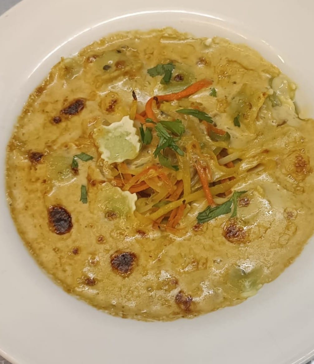 Dresser en mettant un peu de sauce dans des assiettes creuses, puis y ajouter les légumes croquants et les ravioles sur le dessus.
